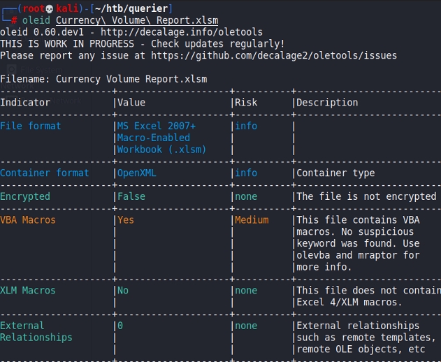 We can download this Excel file back to our machine for analysis. Here, I used oletools to find out more about the file: