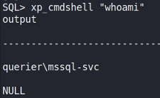 With access to the MS-SQL Database, I found that we are able to use xp_cmdshell to execute commands on the server.