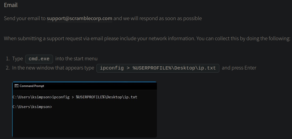 Heading to the Support Request page shows this: