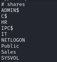 Taking a look around the machine, we can go ahead and view all the other Shares that we could not access just now by reading the C:\Shares