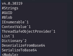 I see DeserializeFromBase64, which is a huge security flaw as user input should never be deserialized. I transferred this binary to another Windows VM (Commando VM in this case) and then opened it up in dnSpy.
