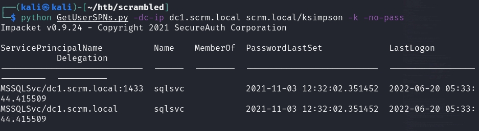 We can use getUserSPNs.py