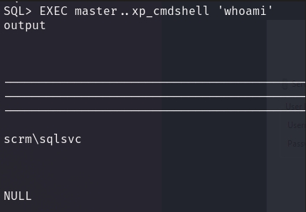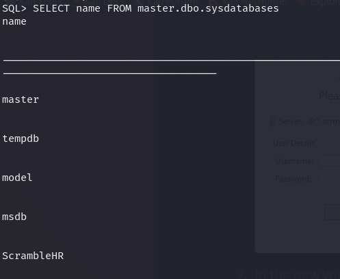 I was unable to do much as this user. So instead, I went to enumerate the SQL database a bit more to hopefully find some credentials within it (as hinted by the PDF earlier).