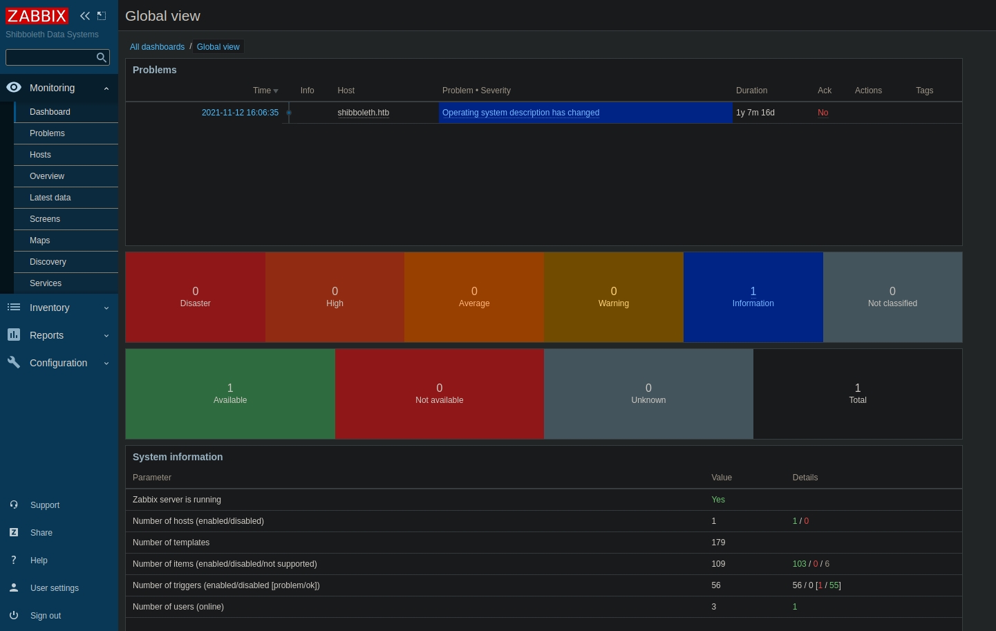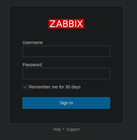 146a600c02030000d35fd619c358b5972202f43f0d805a59be61999d29fa9cb488c04c7aeb19e6c9a123456789abcdefa123456789abcdef140d41646d696e6973747261746f72:2fb52f26c84b9d7fd3972b0f304ac5c70103e63a:ilovepumkinpie1With these credentials, we can login to the Zabbix instance: