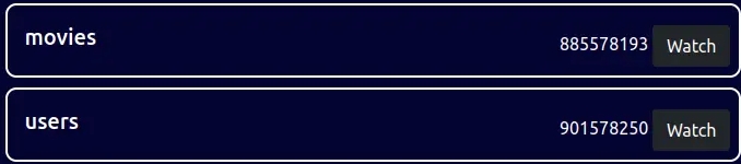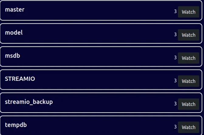 Using the STREAMIO database, we can dump out the tables present: