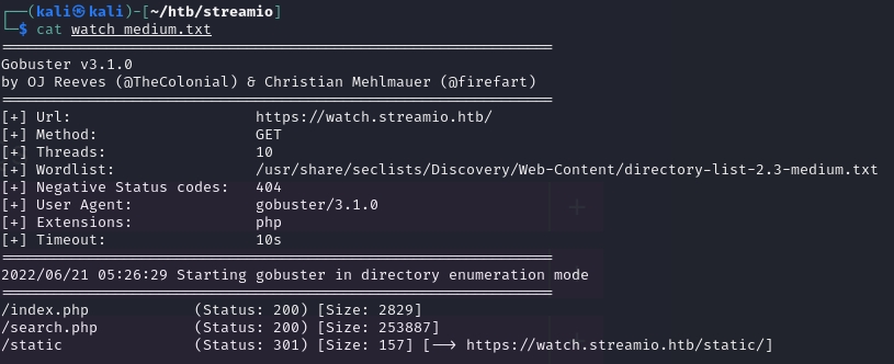I also used gobuster to see what other files were present on this directory.