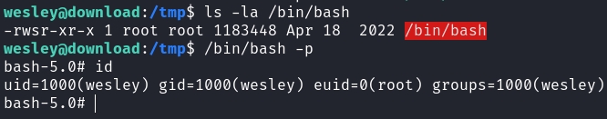 Since we have an arbitrary write as this user, I thought of creating a /bin/bash SUID binary to escalate to it. Being able to write files as the postgres user is no good if we cannot execute it as postgres.
