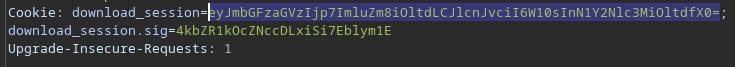 I noted that there was a JWT like token present within the download, as well as a .sig cookie: