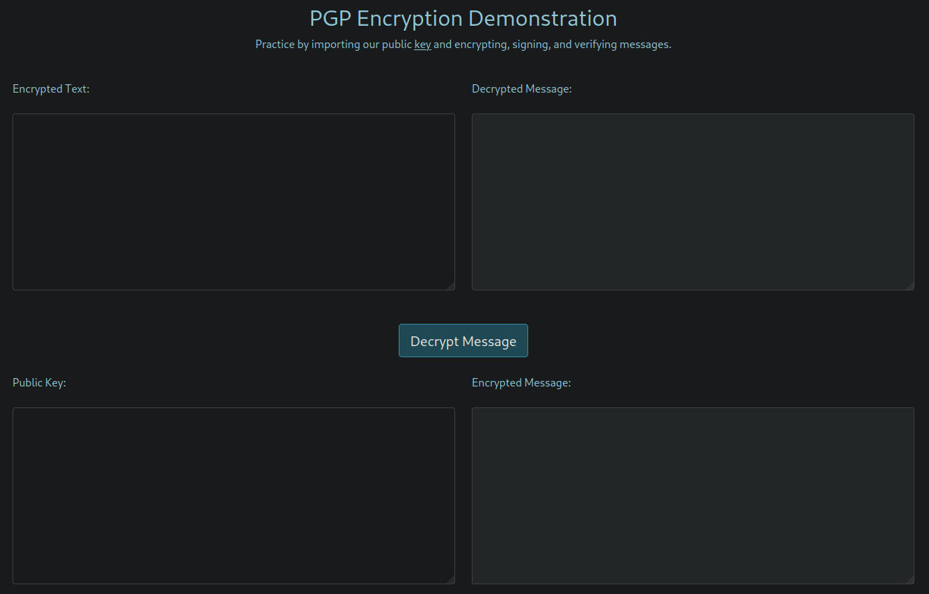 If we check out their guide. we would find that the website allows us to view encrypt and decrypt messages using our own key: