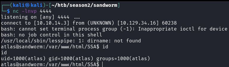 atlas@sandworm:~/.ssh$ echo 'key' >> authorized_keys