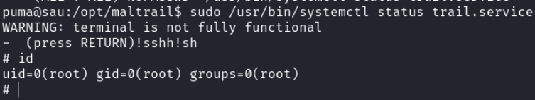 (ALL : ALL) NOPASSWD: /usr/bin/systemctl status trail.service
