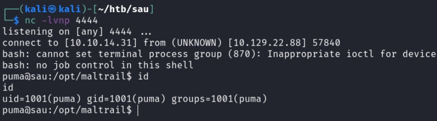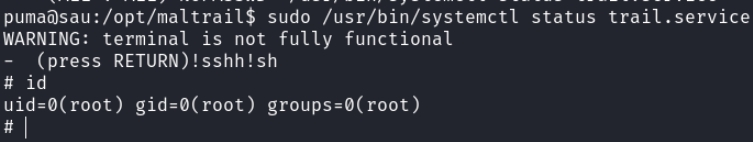 puma@sau:/opt/maltrail$ sudo -l