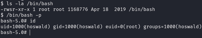 hoswald@badcorp:~$ find / -perm -u=s -type f 2>/dev/null