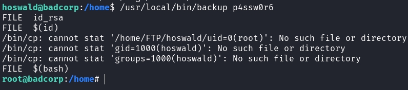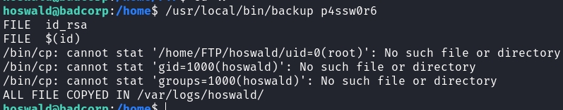 hoswald@badcorp:~$ /usr/local/bin/backup