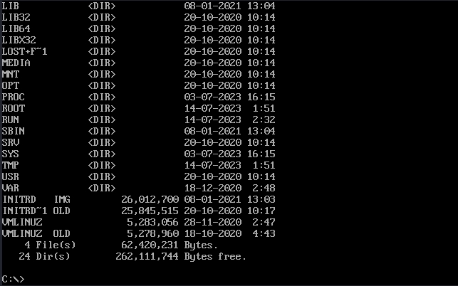 dosbox -c 'mount c /' -c "type c:$LFILE"This would mount the Linux file system within the C Drive of the termnal: