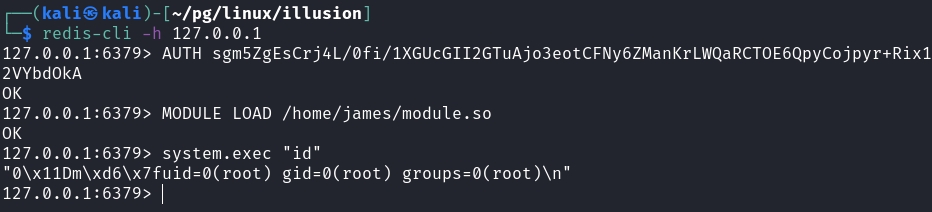 0 S www-data 3221 3025 0 80 0 - 1625 pipe_w 10:37 pts/0 00:00:00 grep redisSince root is running it and we can login, this means that we can also load any module that we want. This repository has a module that works:
