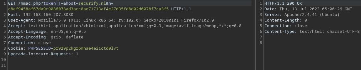 We are required to submit a `h`, `host` and `token` variable to this website. There's a `$secret` value being passed around. While googling for similar exploits online, I came across this site: