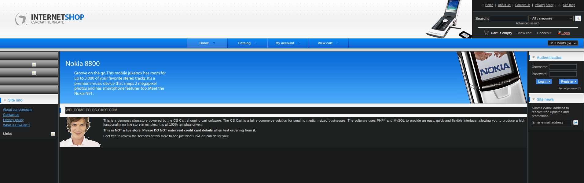 Port 80 was running InternetShop CS-Cart, which looks really vulnerable:
