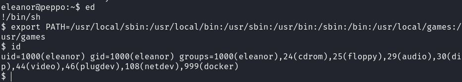 eleanor@peppo:~$ export PATH=/usr/local/sbin:/usr/local/bin:/usr/sbin:/usr/bin:/sbin:/bin:/usr/local/games:/usr/games