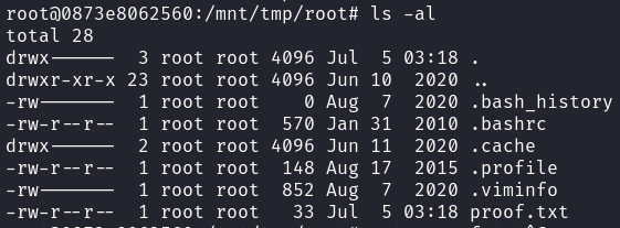 root@0873e8062560:/tmp# mount /dev/sda1 /mnt/tmpThe above commands would give us root access over the host machine's file system: