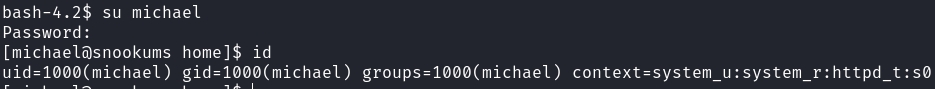 +----------+----------------------------------------------+These are just base64 encoded strings, and we can easily find the cleartext passwords. michael is the only user within /home, so we can decode his password: