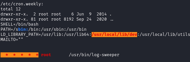 Turns out that there are some directories that we can write to within the LD_LIBRARY_PATH, and the cronjob running log-sweeper doesn't have a utils.so specified:
