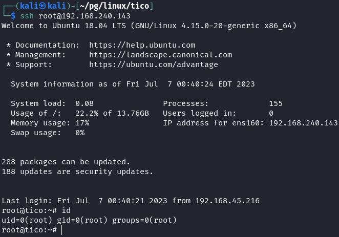 [+] Successfully uploaded fileAfterwards, we can just ssh into root: