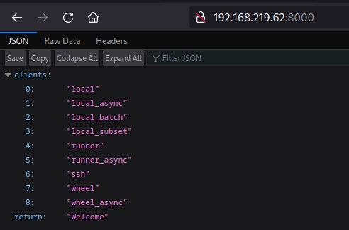 Port 8000 looked the most interesting since it was only returning JSON data. Visiting it just shows a few 'clients':