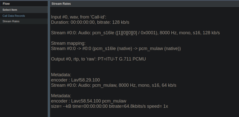 This is a raw audio file, and we need to convert it using sox. We can find the exact configurations required in the Stream Rates tab on the left: