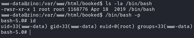 -rwxrwxrwx 1 www-data www-data 164 Apr 28 2020 /var/www/html/booked/cleanup.py