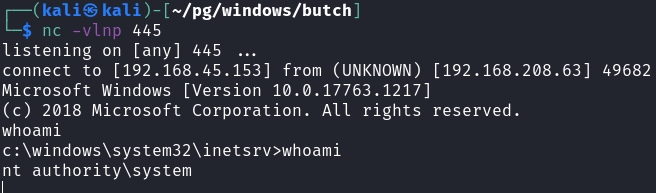 When we upload the file and refresh the page, we get a shell as the SYSTEM user.