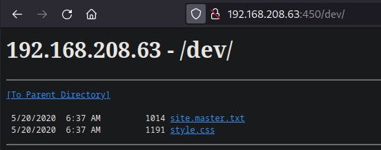 /dev (Status: 301) [Size: 153] [--> http://192.168.208.63:450/dev/]